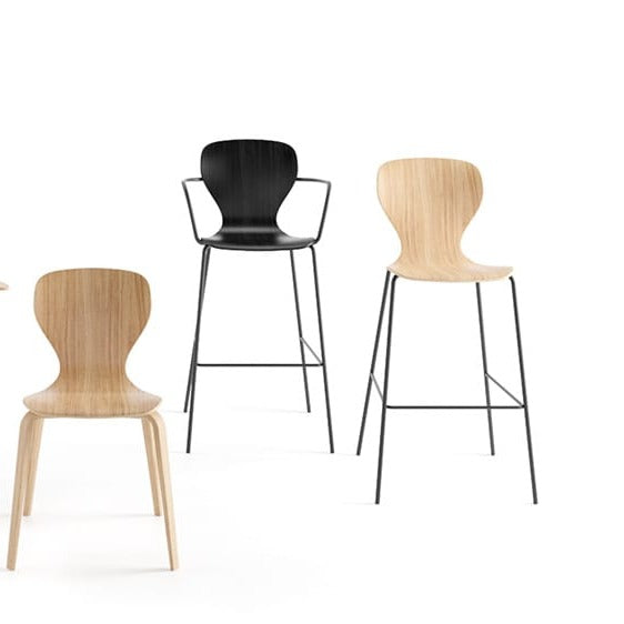 It is possible to choose its finishes in oak wood in its entirety, as well as combining its oak seat and its metal structure. Both versions of the chair can be complemented with characteristic armrests, designed to embrace the user.