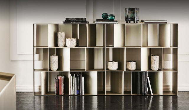 Discover the Nautilus Shelving Unit, the perfect solution to save space and organize books, souvenirs and other objects with style. Its innovative design invites you to travel while bringing geometric shapes to any room. Get the functionality and style you've been looking for. Available in different sizes. Ask for more information at our Absolut Home store in Mallorca.